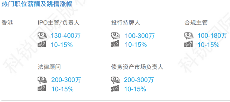 数据来源:猎头公司维多利亚老品牌VIC国际资深行业专家对2019年热门职位薪酬范围及跳槽涨幅的预测。薪酬为基本年薪。单位为港币。